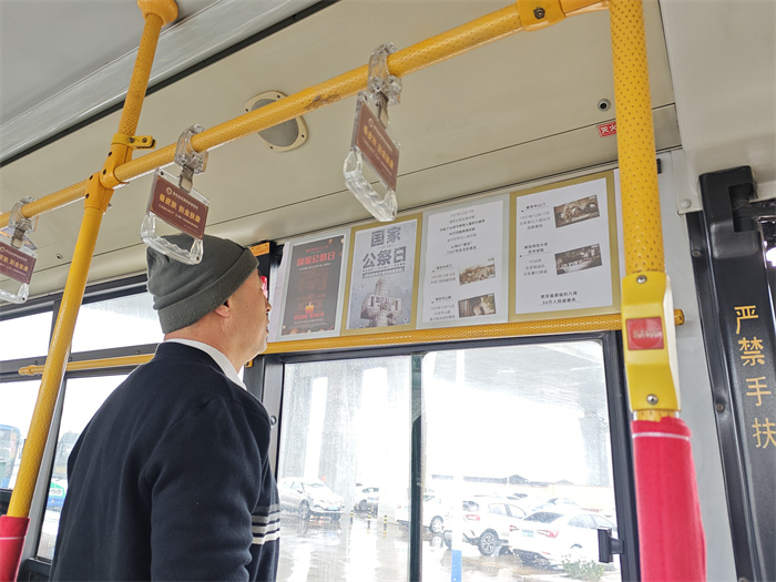 “公交车不仅是交通工具,也是城市文化的流动窗口,更是社会教育的公共课堂。”驾驶员邱月山介绍道,“我们希望在这样一个特殊的日子里,利用车厢这一流动空间,营造一种氛围,让乘客即便是在奔波的途中,也能稍驻片刻,凝神回想,让历史的记忆在城市的脉动中传承下去。”