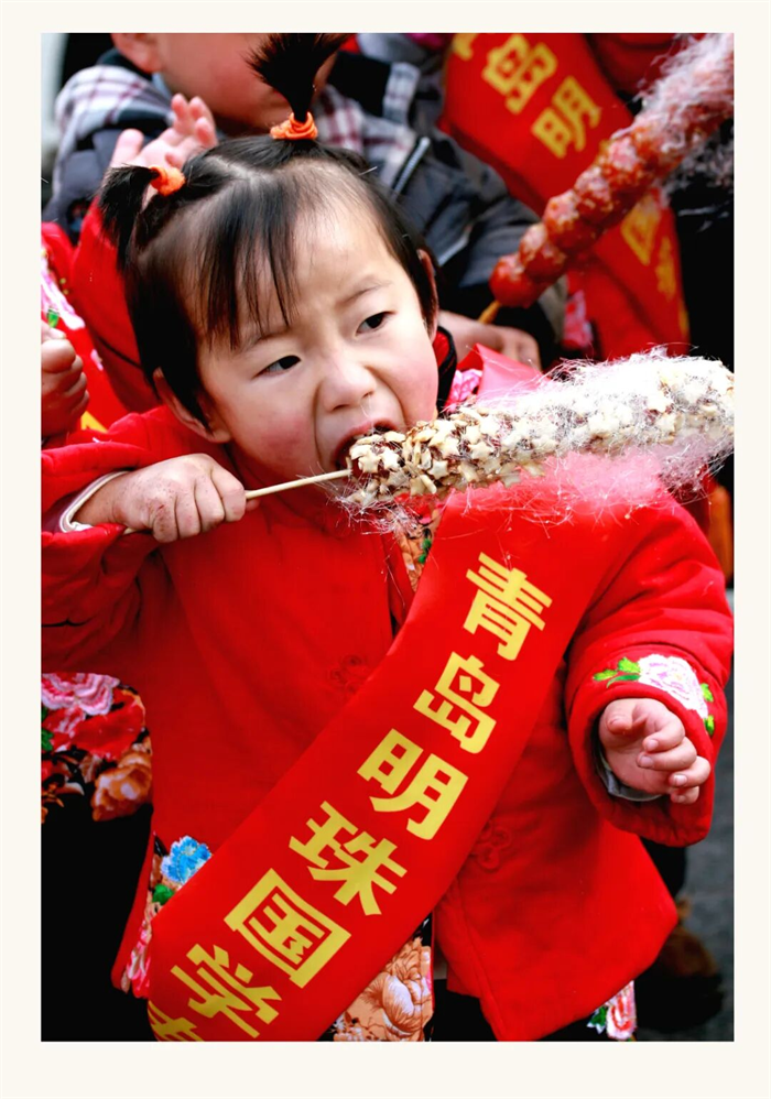 每年糖球会,最动人的莫过于孩子们的笑脸。这些年,镜头定格下无数捧着糖球、眉眼弯弯的小朋友,他们或踮脚接糖球、或欢喜打量花式糖球,这些瞬间凝成老照片,藏着市北的烟火温情与一代人的糖球记忆。