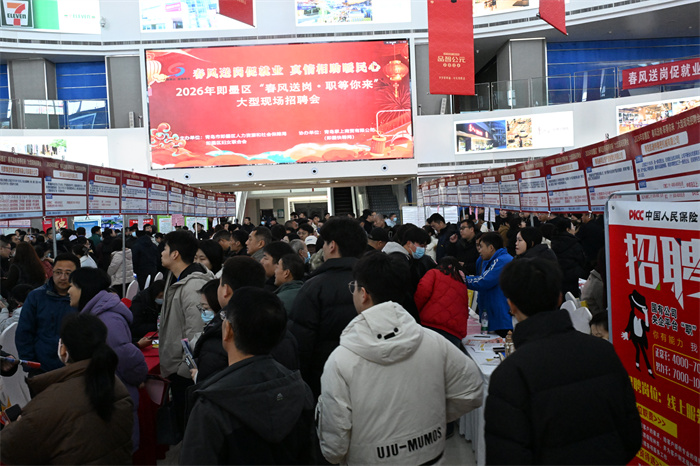 作为一年一度的求职用工“重头戏”,2月25日,正月初九。山东省青岛市即墨区2026年“春风送岗·职等你来”专场招聘会在即墨区服装市场广场拉开大幕,为就近就地就业创业“铺路亮招”,把岗位送到群众身边。即墨区多家优质企业推出岗位6000多个,用工需求多达千人,涉及化工、销售、建筑等众多行业,全面引导劳动力有序返岗就业。众多求职者和陈崇建一样,借着这场“春风”实现自己的愿望。此次活动线上线下同步开展,参与招聘会的150余家用人单位提供6000余个岗位,涵盖机械制造、财务、销售、食品加工、市场营销等领域。