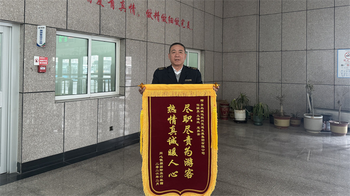 “尽职尽责为游客,热情真诚暖人心。”这面由同心假期国际旅行社赠送的锦旗,是游客对青岛城运胶州交通发展集团租赁客运分公司驾驶员王海政、慈敦金最真挚的感谢与认可。这份肯定,源自两位驾驶员春节期间坚守岗位、用心服务的点滴付出。