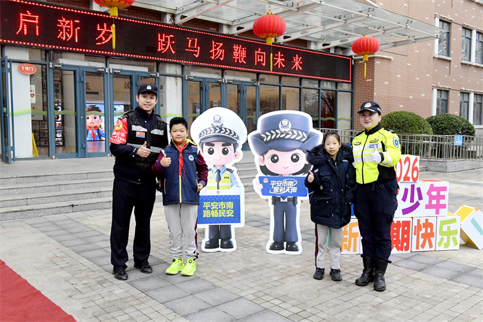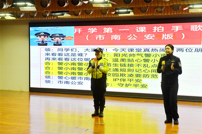 与传统宣讲模式不同,今年“开学第一课”在民警、交警现场讲解交通安全、反诈防骗等安全知识的基础上,创新推出市南公安原创卡通IP形象“警小暖”“警小南”系列安全动画,以寓教于乐的形式,为广大学生送上一堂沉浸式、趣味化、体验式安全普法教育课。