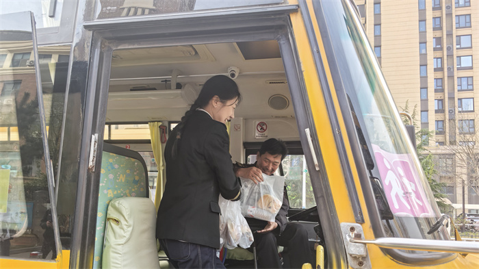 发车现场,所有车辆准时到位,工作人员与驾驶员分工协作,协助教师引导学生有序上车,清点人数,做好安全提醒,全程平稳规范驾驶。集团全程做好实时调度与应急值守,全程监控车辆运行状态,保障运输过程安全、顺畅、有序。集团商贸物流分公司也加入到保障队伍,贴心为参运人员提供午餐服务,以细致周到的后勤保障,为徒步远行之旅增添温暖与便利。