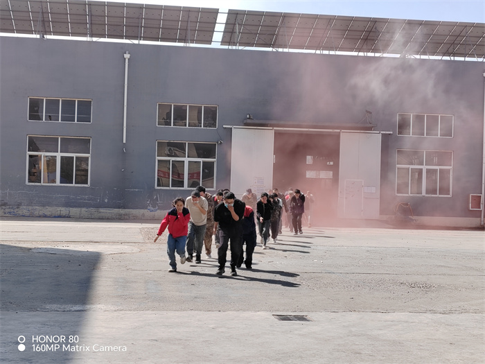 本次演练模拟青岛泰和木业有限公司砂光车间木粉积尘间因吸入生产火花引发粉尘爆炸,造成人员受伤、火势蔓延的突发场景。演练严格按照事故接警上报、应急响应启动、现场警戒、人员疏散、伤员救治、火灾处置等流程有序推进。