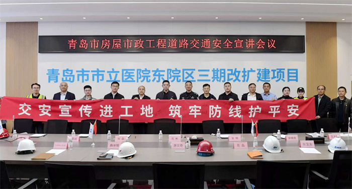为全面落实房屋市政工程道路交通安全管理要求,切实提升施工人员交通安全意识和自我防护能力,4月16日,青岛市公安交管支队联合市住建部门,在市立医院东院区三期项目部主会场,举行“交安宣传进工地 筑牢防线护平安”主题普法宣传活动。活动以“主会场宣讲+视频会议同步”形式,覆盖全市房屋市政工程、部分施工人员及家属,实现交通安全宣传全覆盖。