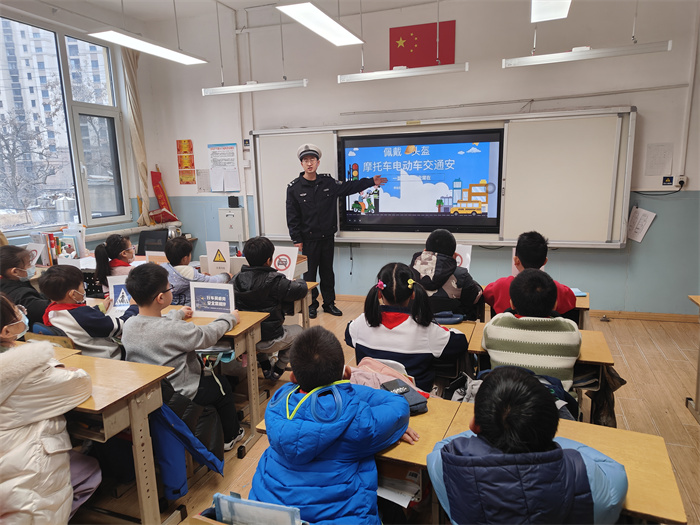 民警们以警车为道具,现场模拟了鬼探头、汽车盲区等场景,还让学生们坐在警车驾驶位置,以“司机”的视角亲自体验、感知车辆驾驶盲区,告诉同学们,汽车的前后左右都存在一定的视线盲区,孩子身形矮小,在汽车周边玩耍或通行时,司机视线盲区很容易引发意外伤害事故。同时,就如何避免车辆盲区等问题进行提问,学生们纷纷踊跃发言,抢答自己的感受。交警蜀黍针对这些问题,耐心讲解如何避免车辆盲区给自己带来的危险,特别是大型货车、大型客车右转盲区问题,以及佩戴安全头盔、系好安全带的必要性,倡导大家日常要摒弃交通陋习,自觉遵守交通法规,做到文明安全出行。